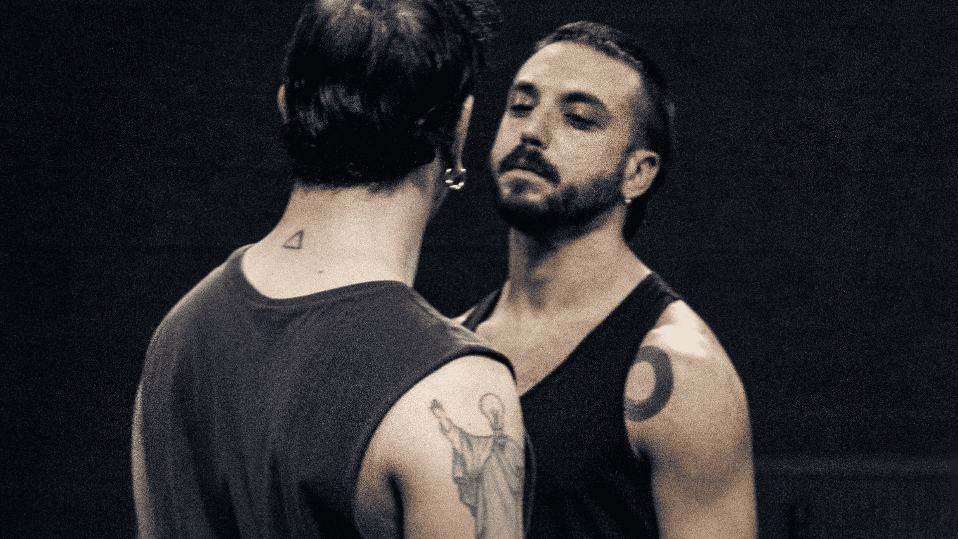 La luce blu, altro richiamo al film di Jarman, concede ai due performer il tempo di incontrarsi e unirsi creando così unʼesperienza ipnotica che intreccia i corpi in un paesaggio omoerotico.